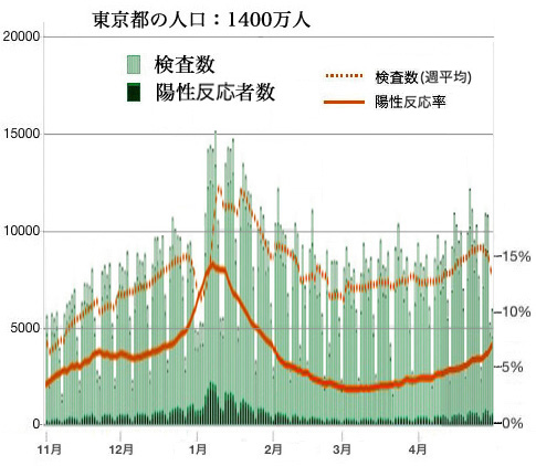 3つのグラフは,人数スケールを一致させている。 これらが示すことは,陽性反応はとっくに確率事象になっているということである。 日本人すべてを 大阪府知事が「感染拡大」と騒いで政府から緊急事態宣言を引き出したとき,その「感染拡大」の内容は,陽性検査数が増えたことであった。 札幌市がいま「感染拡大」と騒いで政府から緊急事態宣言を引き出したわけだが,この「感染拡大」の内容も,陽性検査数が増えたことである。 しかし<引っ込みのつかない者たち>は,検査数を隠蔽して,陽性反応者数を「新規感染者」と言い換える。 検査数で割るのではなく人口で割って,統計を「人口10万人あたり」にする。 そして,札幌市の感染拡大はものすごいと,唱えるわけである。
