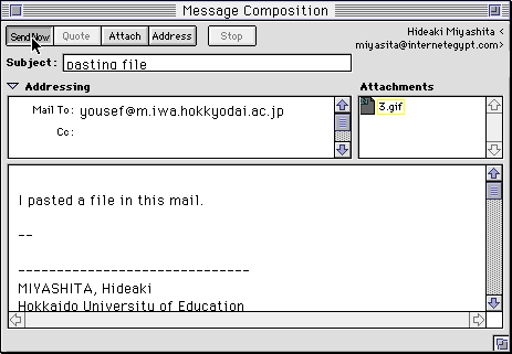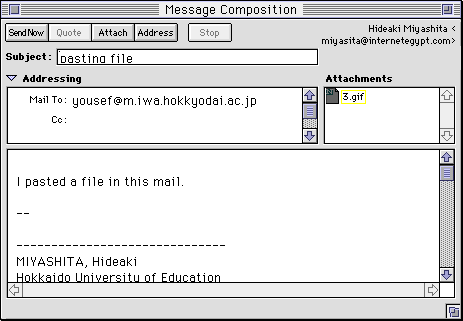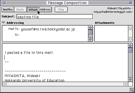 - Then the file appears in the "Attachments" window of the "Message Composition" window.