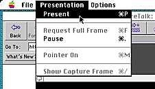 - プレゼンターになるときは,メニューバーから「Presentation」→「Present」と選択します: