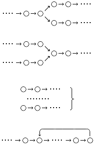 ペアノの公理は,以下の形態を禁止しつつ系列の図式のみを残すような規定になっている: