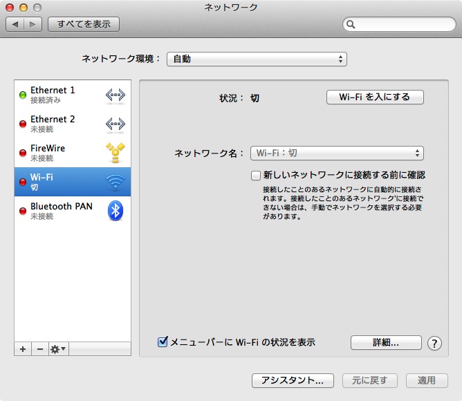 - 「TCP/IP」で,PC (Mac Pro) の IPアドレスを設定する。