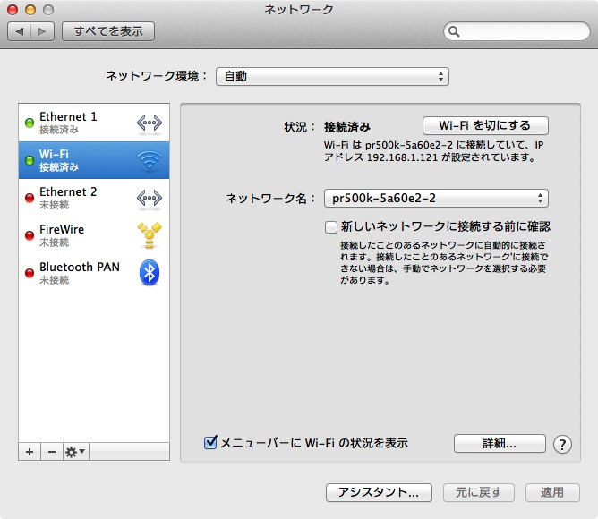 - これで,WiFi による PC (IP アドレス 10.10.10.2) と Raspberry Pi (IP アドレス 10.10.10.1) が可能になる。